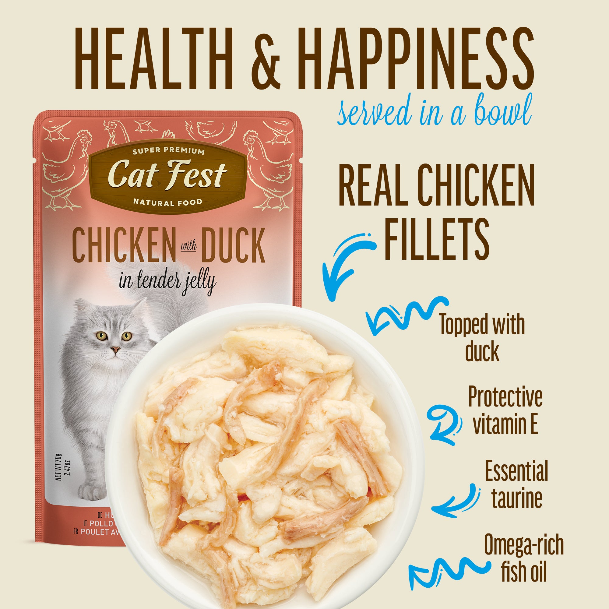A rich, natural meal made with care — full of flavour and packed with goodness to keep your cat healthy, happy, and purring for more.